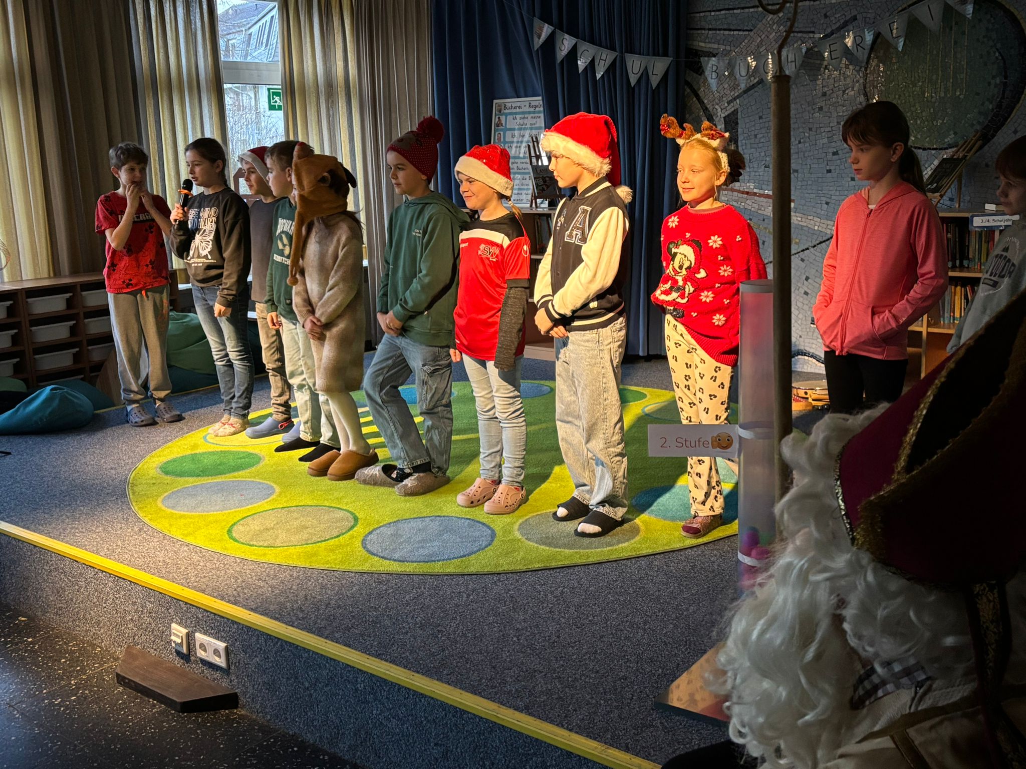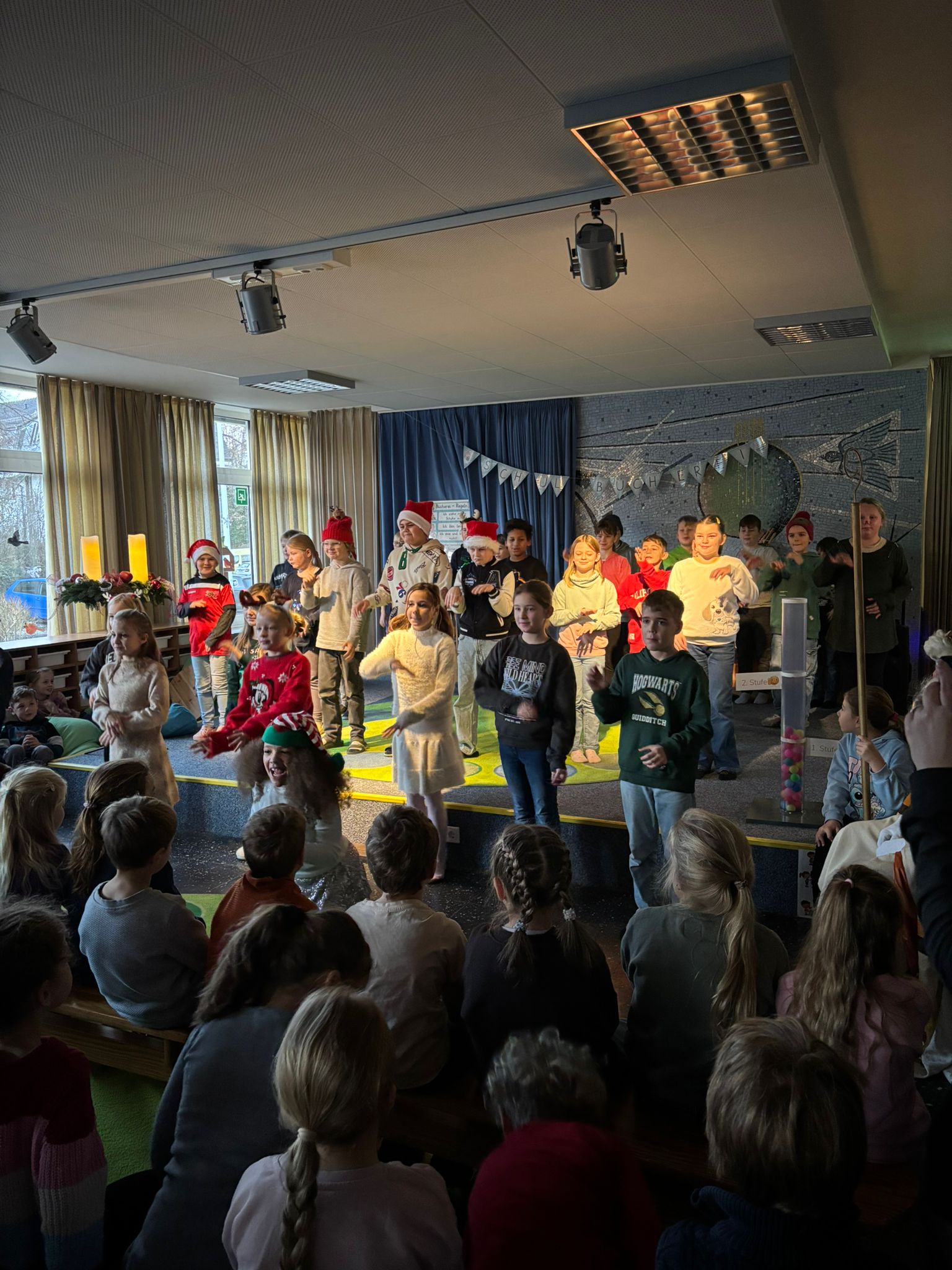 Am Montag fand in unserer Aula das Adventssingen zum 2. Advent statt. Mit viel Freude und Engagement präsentierte die Klasse 4b die Geschichte von Rudolf. Die 4a trug ein Gedicht vor und am Ende tanzten alle gemeinsam zu einem weihnachtlichen Klassiker.