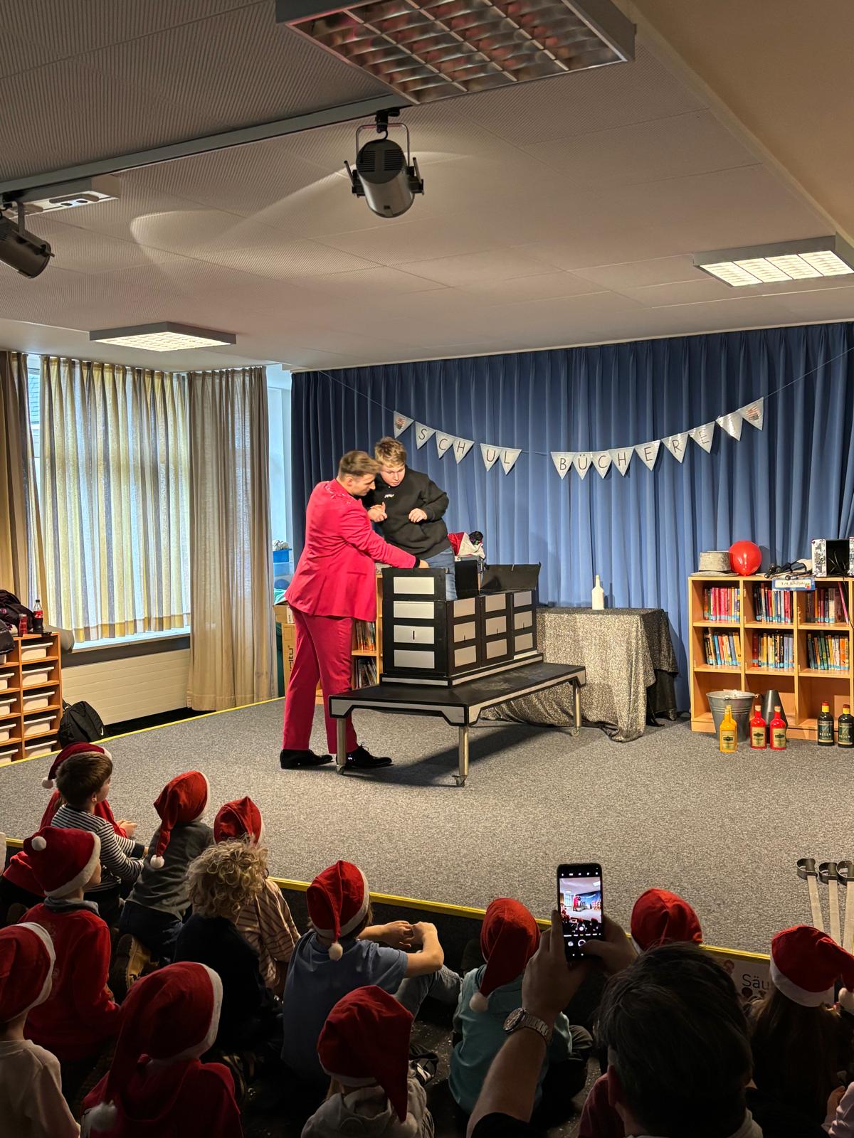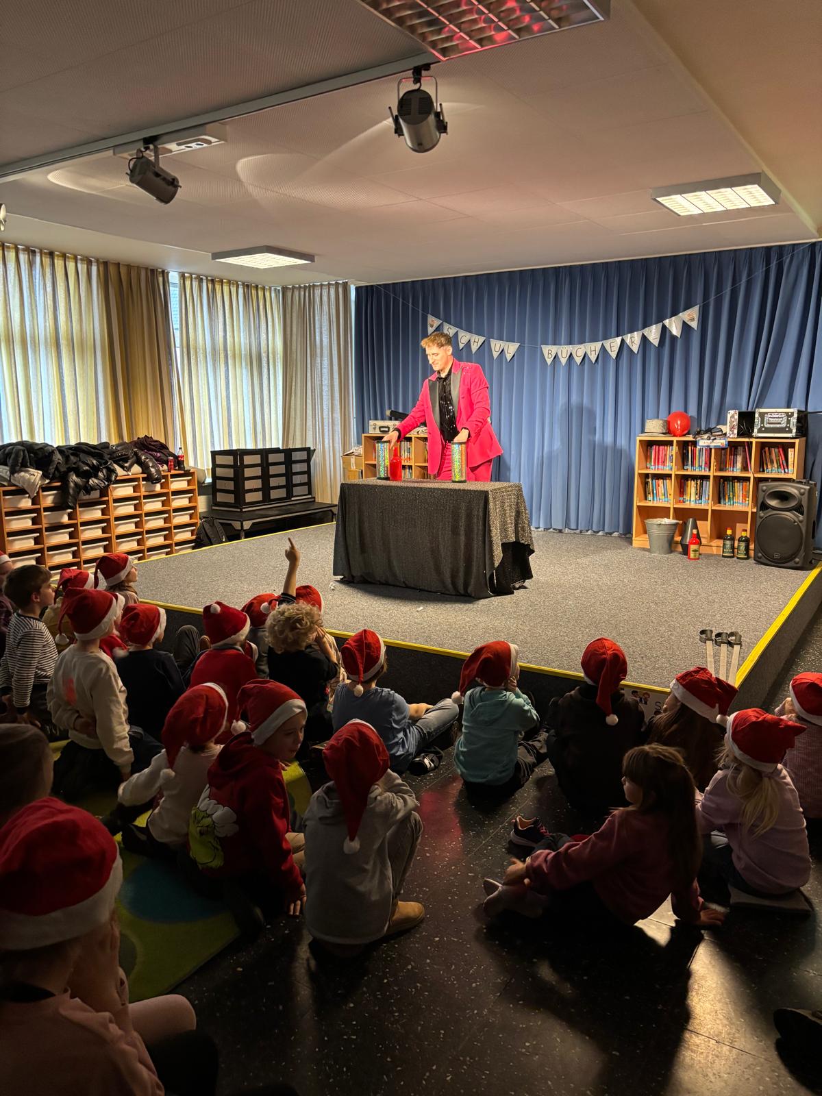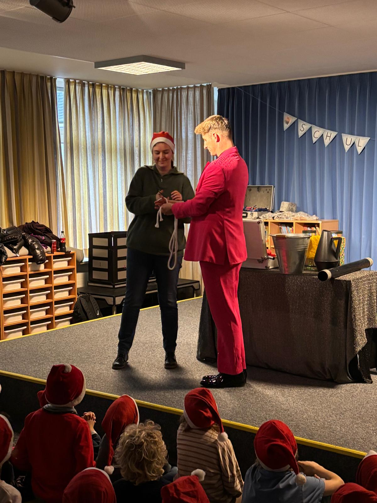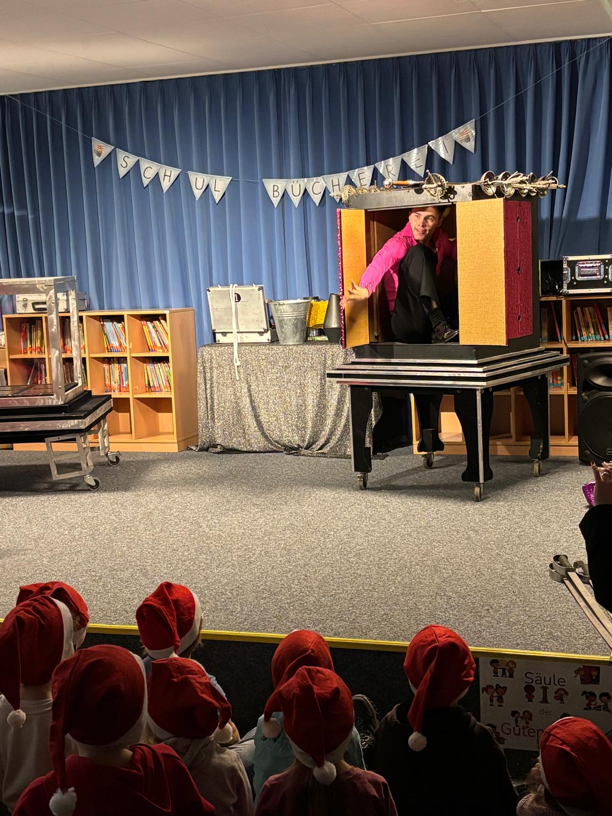 Am letzten Schultag vor den Weihnachtsferien durften unsere Schülerinnen und Schüler einen ganz besonderen Gast erleben: den Magier und Illusionisten Jannick Holste! Mit seiner einzigartigen Mischung aus Zauberei, Tanz und Entertainment begeisterte er alle Kinder und Lehrkräfte gleichermaßen. Sein Bruder Lou verlässt unsere Schule und als Dank für die letzten Jahre, trat Jannick, zusammen mit Lou für uns auf.