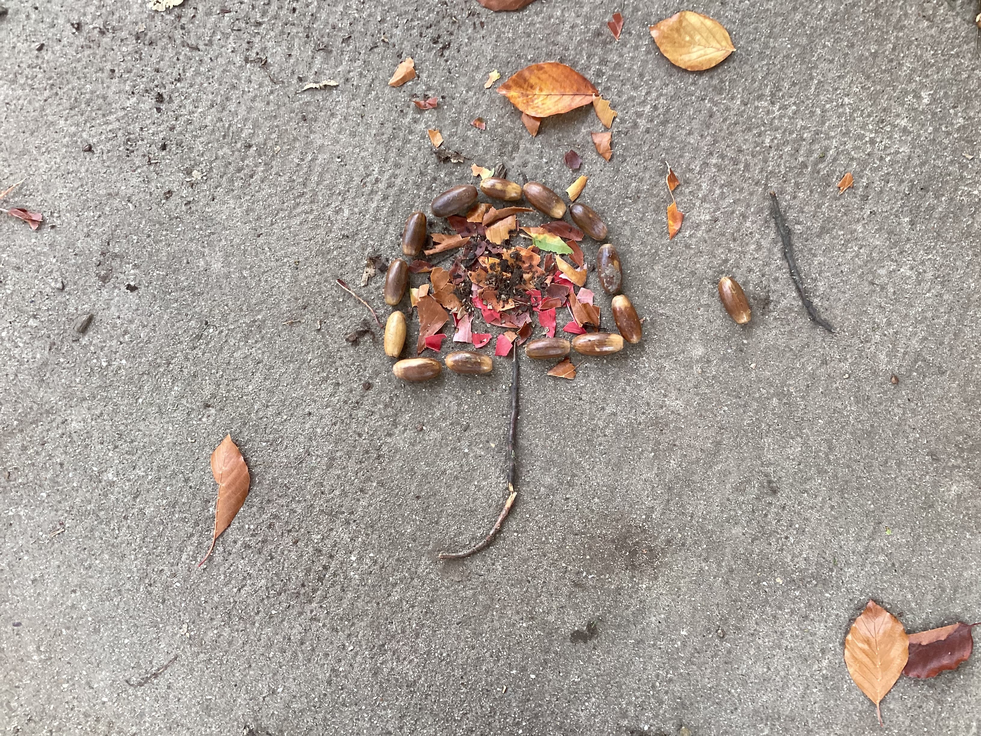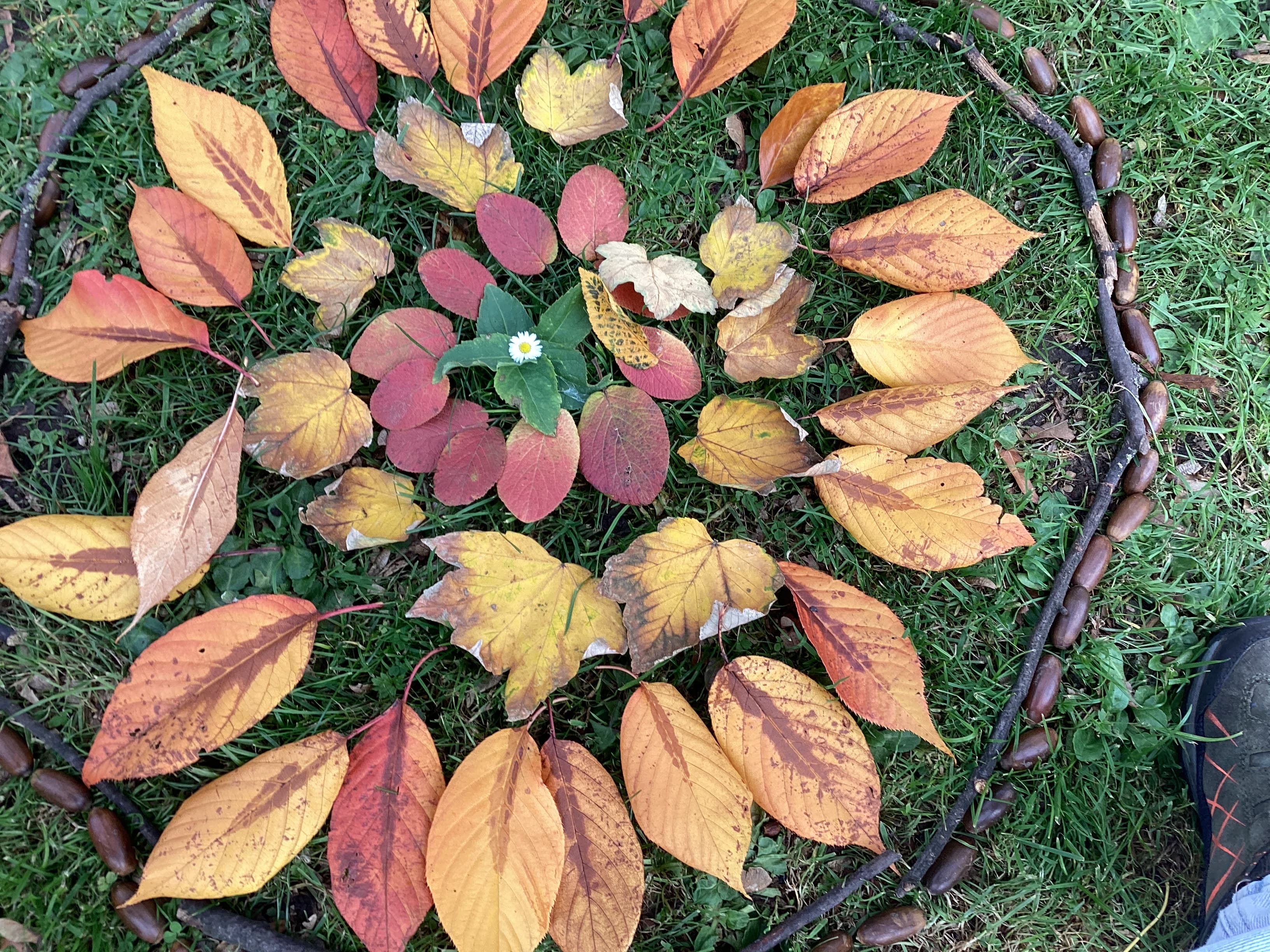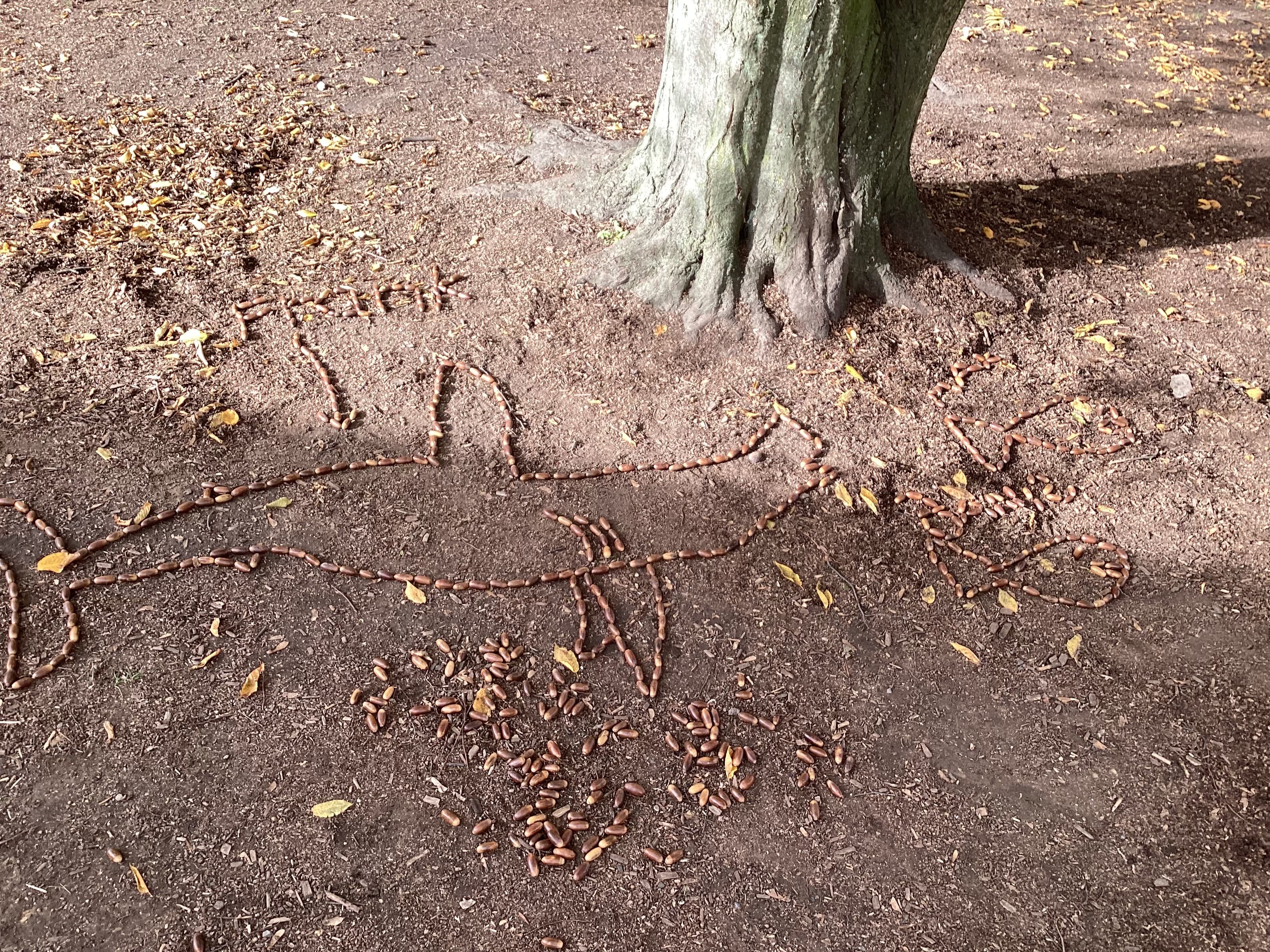 Die Klasse 4b hat im Kunstunterricht kreative Landart- Kunstwerke aus Naturmaterialien gestaltet. Mit Blättern, Steinen und Ästen entstanden fantasievolle Formen und Muster auf dem Schulgelände.