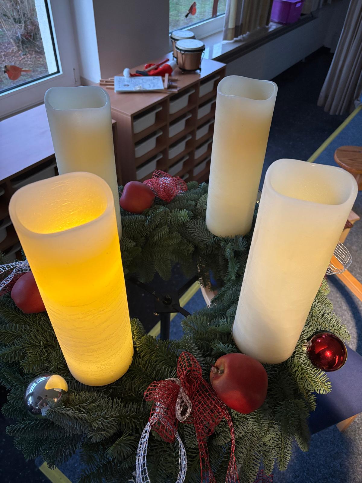 Am Montag nach dem 1. Advent haben sich alle Kinder unserer Schule in der Aula getroffen, um gemeinsam in die Adventszeit zu starten. Es wurde gesungen, gelacht und natürlich ganz viel gestaunt – denn die erste Kerze brannte schon und es duftete ein bisschen nach Weihnachten.