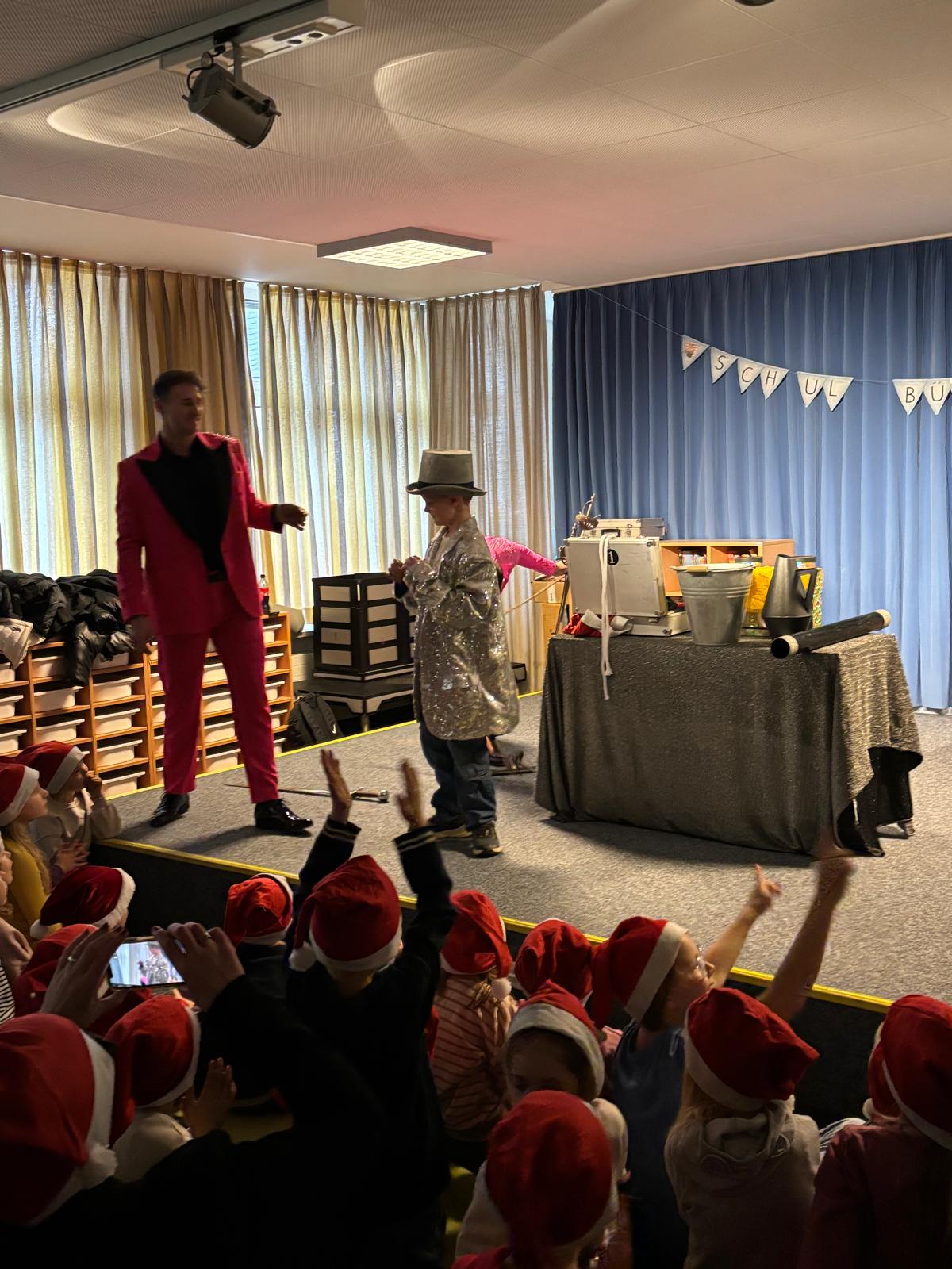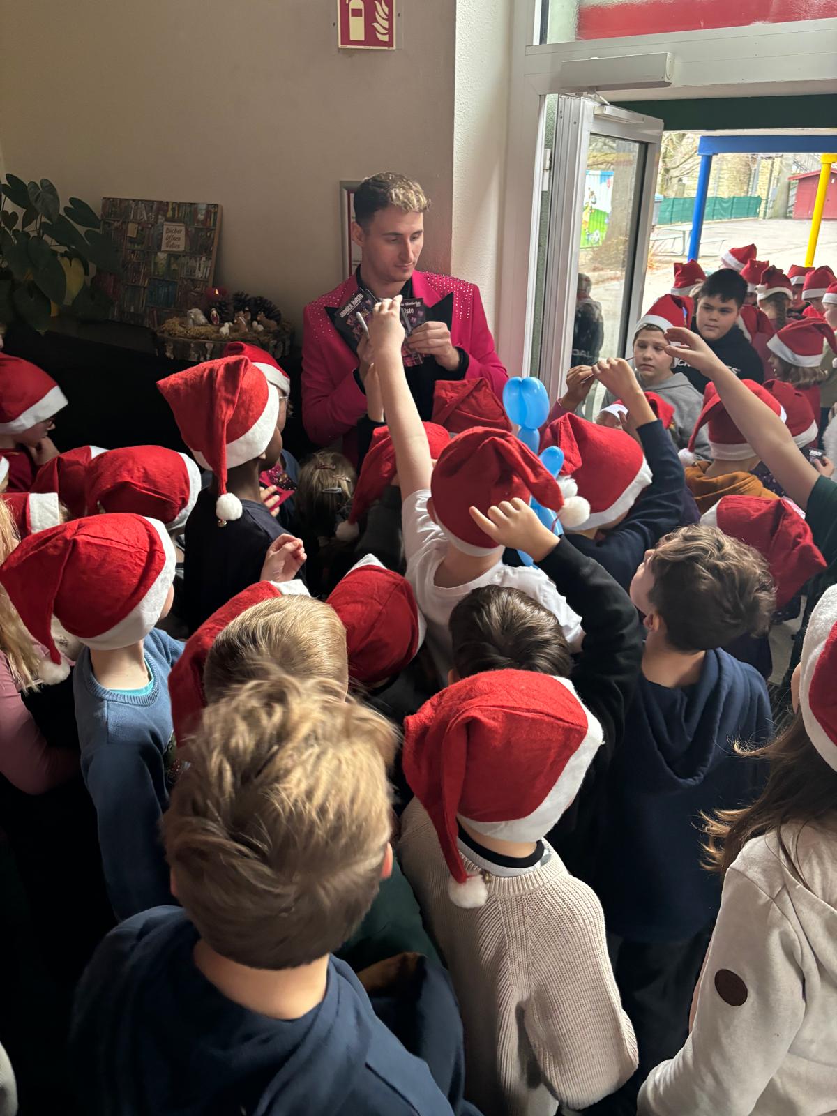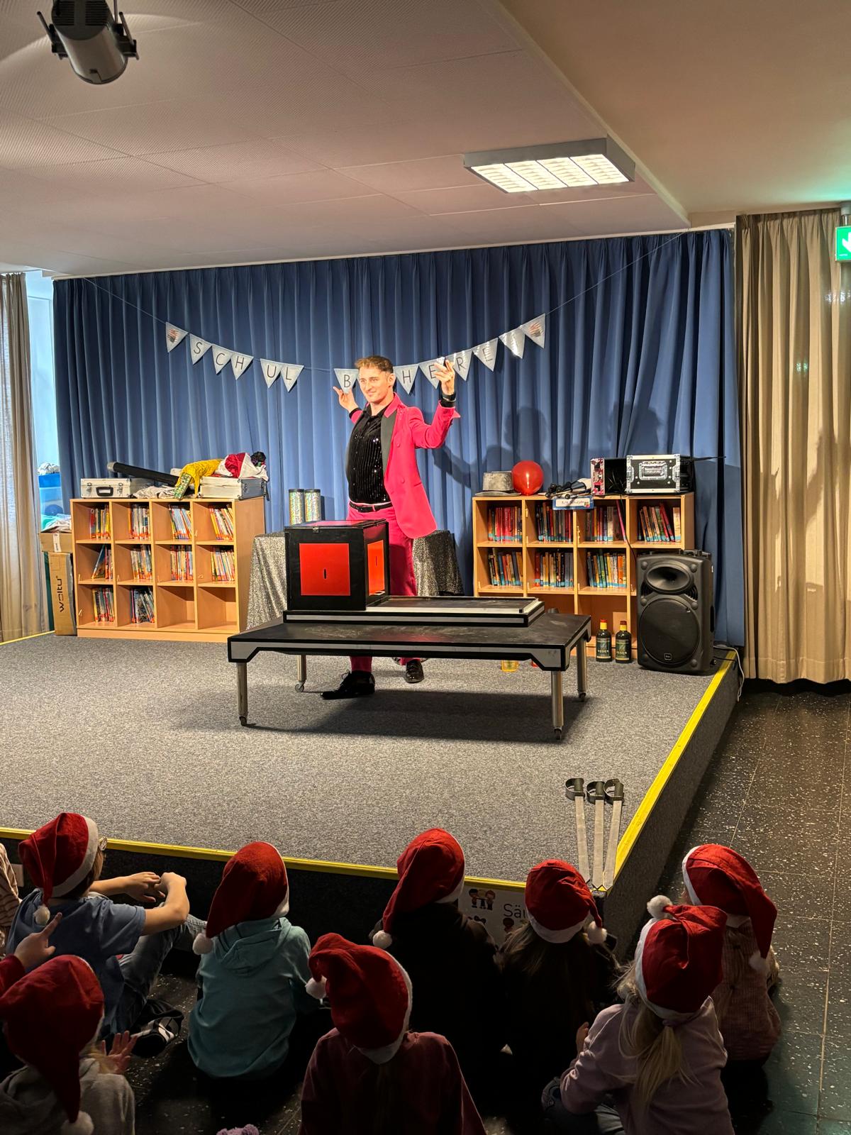 Am letzten Schultag vor den Weihnachtsferien durften unsere Schülerinnen und Schüler einen ganz besonderen Gast erleben: den Magier und Illusionisten Jannick Holste! Mit seiner einzigartigen Mischung aus Zauberei, Tanz und Entertainment begeisterte er alle Kinder und Lehrkräfte gleichermaßen. Sein Bruder Lou verlässt unsere Schule und als Dank für die letzten Jahre, trat Jannick, zusammen mit Lou für uns auf.
